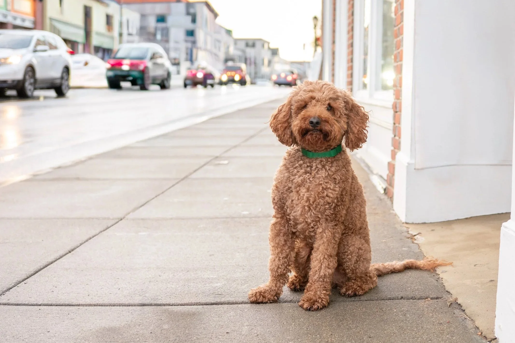 Your dog should be comfortable in a downtown setting with noises, people, and other dogs bustling about. “Sit and stay” are helpful but not required. Dogs will remain on leash (leashes will be removed in Photoshop).